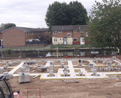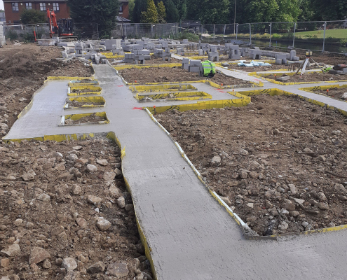 The groundworks and civils included Bulk Excavation, CFA Piling, RC Foundations, S38 & S278 Highway Works, S104 Drainage with 1200mm Pipes for Attenuation, External Works, Block Paving and Landscaping.