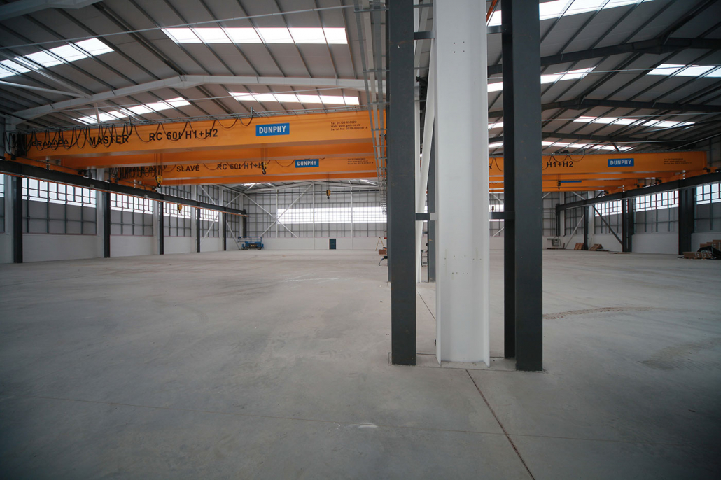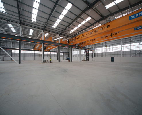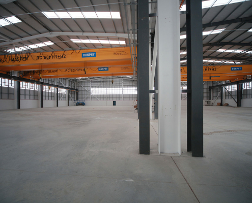 This project comprised of a new build 32000 sq ft production building with external works – a steel frame structure with cladding.
